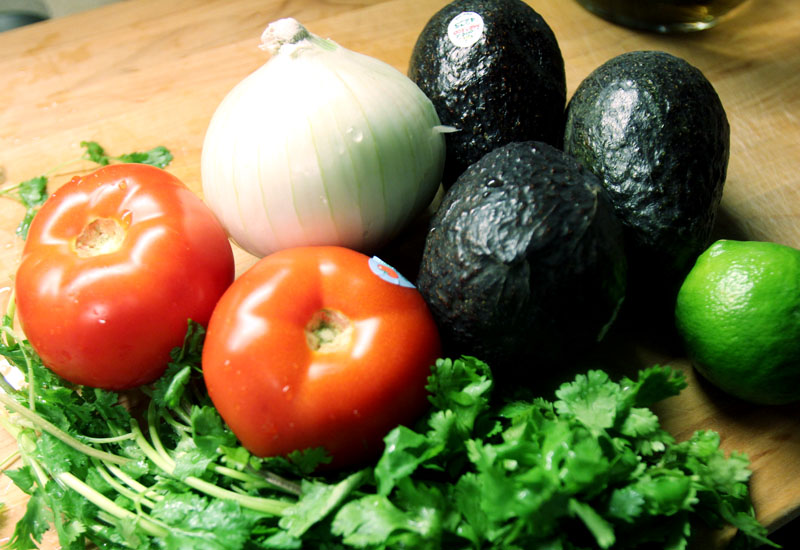 The thing about guacamole is that no recipe is going to be totally accurate because it all depends on the quality of the avocados and the tomatoes. If you have perfect, middle of the summer avocados and tomatoes that are perfectly sweet and wonderful, you'll probably need less lime and less salt and pepper to get the flavor just right. So the ingredients list above lists the recommened minimum's, from our experience. But do please take this with a grain of salt (ZING!), and look at it as more of a process. Add some ingredients, taste, and if you need more, add a little more here and there, and taste again.
